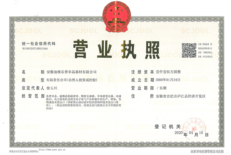 • 安徽迪維樂普非晶器材有限公司企業(yè)質(zhì)量標準